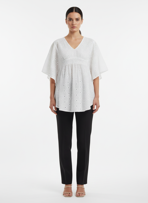 Bata Branca Bordado Vazado Decote V
